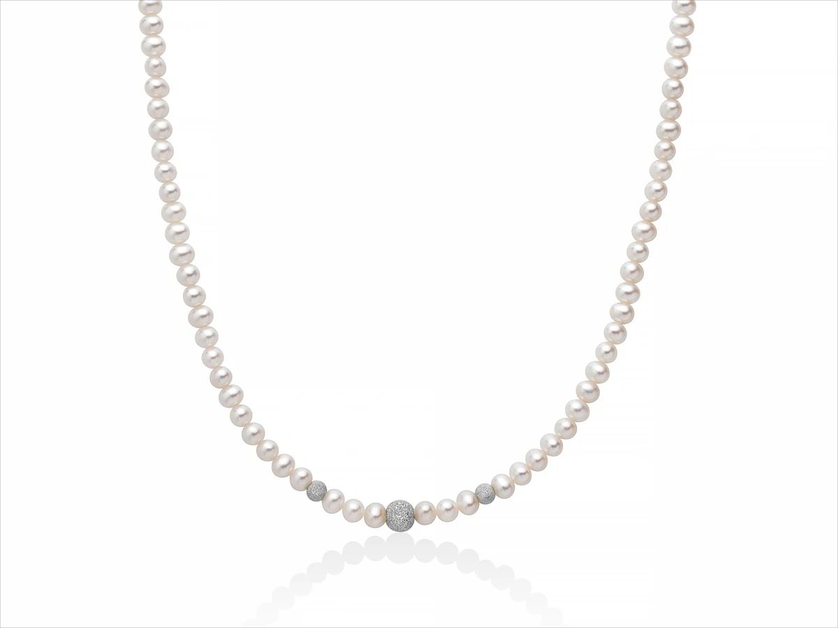 Collana Donna Miluna Perle - PCL1839V Realizzata in Oro bianco 18kt, con filo di perle naturali di 4/4.5 mm e sfere diamantate. Un regalo unico. Un indosso meraviglioso