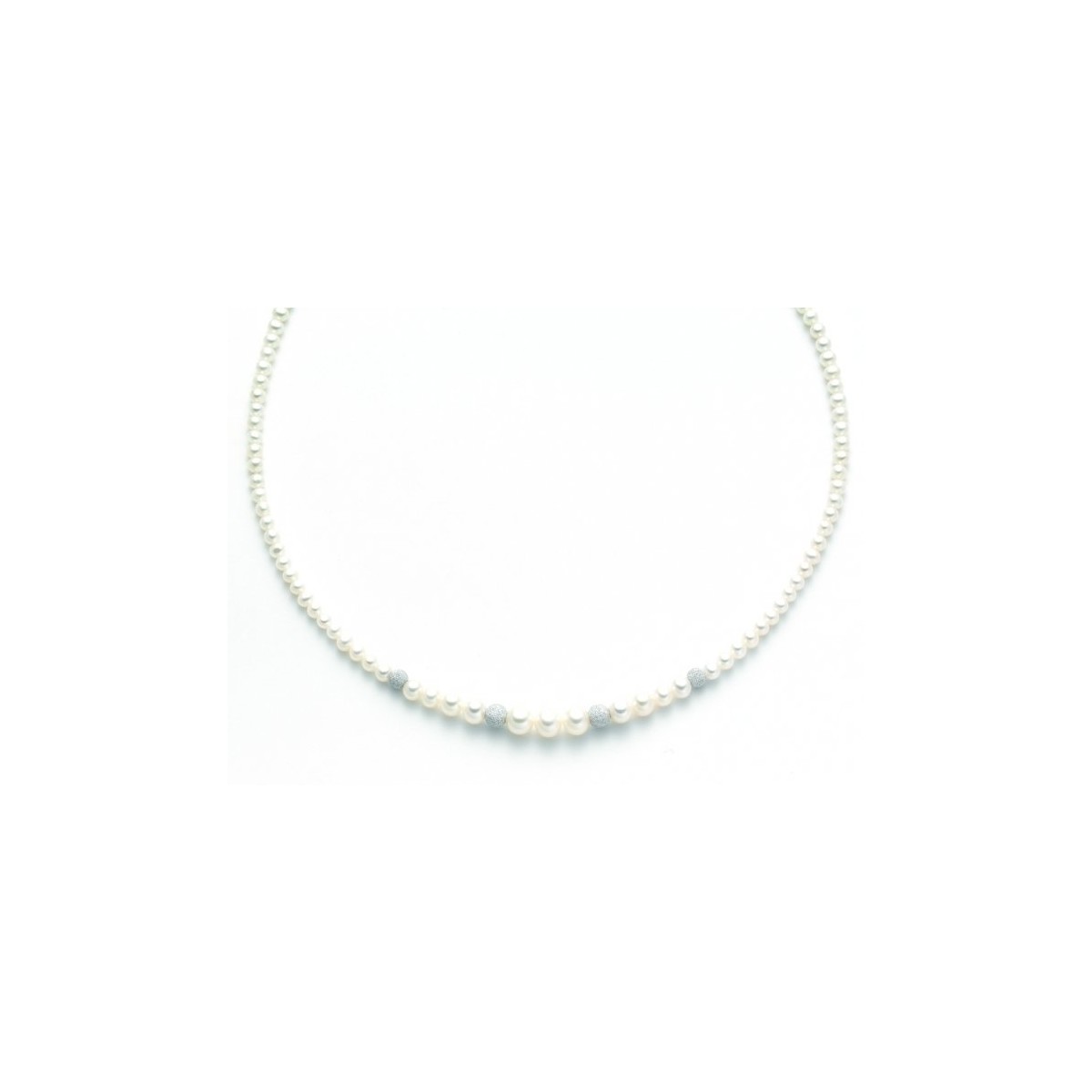 Collana Miluna Perle - PCL1836 realizzata in perle, con chiusura in oro bianco 18kt. La collana è composta da una serie di perle con diametro a scalare da 4 mm a 4,5 mm e da 4 sfere diamantate in oro bianco 18kt. Con un design innovativo, i gioielli Miluna sono i gioielli dei momenti speciali, per celebrare una ricorrenza importante e rappresentare il valore simbolico di amore ed eternità. Gioiello Made in Italy corredato di astuccio, shopper e soprattutto garanzia ufficiale Miluna, che garantisce le caratteristiche dell’oggetto descritto, la qualità del materiale, la lavorazione e l’originalità della provenienza. Inoltre è un documento che accerta la legittimità del possesso.