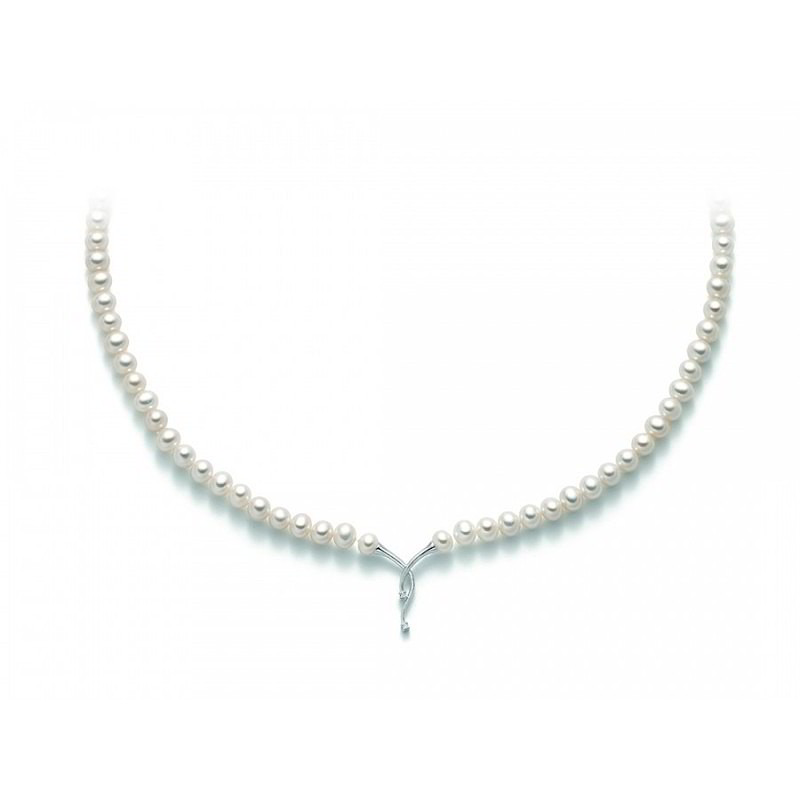Collana Perle Miluna - PCL5228 Realizzata con perle d'acqua dolce 5,5-6 colore bianco. Ha due diamanti di carati totali 0,01 colore H purezza SI taglio brillante rotondo. Chiusura a moschettone e lunghezza 40 cm.