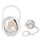 Portaciuccio Nanan Argento Bianco - NPO0001 Realizzato in argento 925 e plastica. Questo portaciuccio è perfetto come idea regalo. Di colore bianco con orsetto e catenina spilla. Scatola originale, certificati del brand e garanzia di 2 anni.
