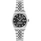 Con un movimento al quarzo solo tempo e vetro minerale che si adagia in una cassa d'acciaio di 28 mm con ghiera ricamata e meraviglioso dial a nido d'ape di colore nero impreziosito dagli indici di cristallo.