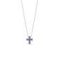 Questo gioiello è realizzato in oro bianco 750/1000, 18 kt. Impreziosito con una croce a pavé di diamanti di kt. 0,16 colore GH e purezza SI e zaffiro di 0.46. La sua lunghezza è di 42 cm.