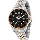 Una cassa in acciaio bicolore di 43 mm abbracciata da un cinturino jubilèe bicolore e chiusura deployante.