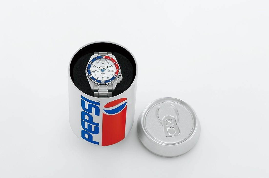 Ghiera girevole unidirezionale che manco a dirlo è bicolore, con corona e fondello, trasparente, serrati a vite. Simbolo Pepsi, con numero progressivo di limitazione.