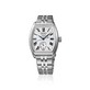 Vetro zaffiro bombato su di un dial bianco e cassa da 36.5 mm cornice rettangolare, il tutto abbracciato da un cinturino in acciaio con chiusura di sicurezza. Fondello trasparente e movimento a vista, resistenza di 5 atm.