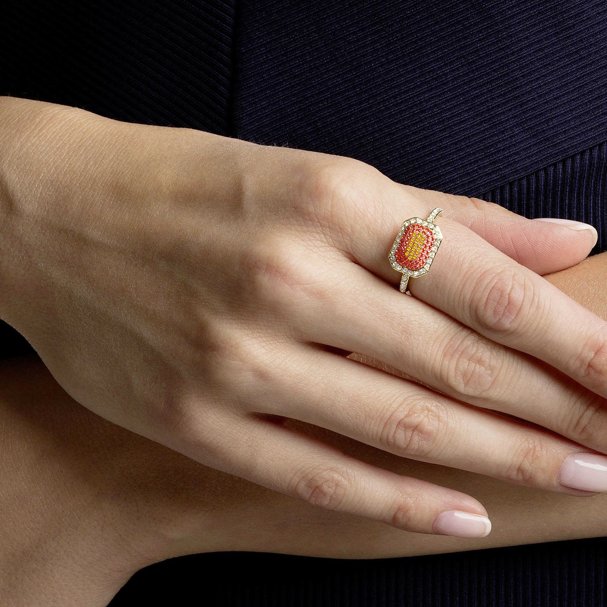 Anello Donna Swarovski No Regrets - 5474415 Realizzato in lega di metalli anallergici, placcato in oro, con Clear Crystal multicolore.