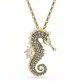 Realizzata in lega di metalli anallergici. Con Clear Crystal bianchi e simbolo del cavalluccio marino, 5.6 cm. Lunghezza 65 + 10 cm. Il pendente diventa una magnifica spilla. Un magnifico regalo.