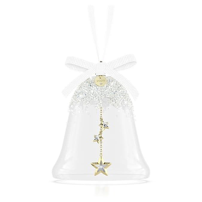 Celebra la stazione delle feste con la Annual Edition Decorazione Campanella Swarovski per il 2025. L’immacolato design in vetro è ricoperto da circa 1.300 cristalli, mentre l’interno contiene un batacchio a forma di stella realizzato con 109 sfaccettature e una finitura in metallo in tonalità oro champagne. La creazione è sospesa ad un nastro in gros-grain bianco con l’incisione 2025 sulla targhetta. Dimensione di 9 x 7.6 x 7.6 cm.