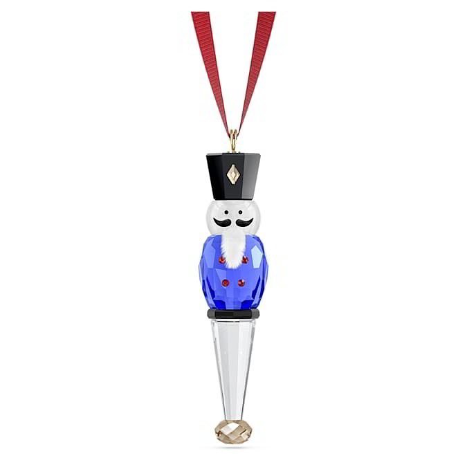 Ispirata ad uno dei personaggi più amati e intramontabili di questa stagione, questa decorazione in cristallo sprigiona la gioia delle feste. Realizzato con 270 sfaccettature, lo schiaccianoci indossa un cappotto blu con delicati bottoni rossi ed è ulteriormente decorato con una barba in tessuto bianco. Appeso ad un nastro in gros-grain rosso, è un modo affascinante per portare tradizione e gioia nel tuo arredo festivo. Dimensioni di 7.6 x 1.8 x 1.7 cm.