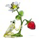 Ricca di curiosità e magia, questa deliziosa scena cattura il momento esatto in cui una piccola ranocchia scopre un ramo di fragole in giardino.