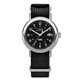Con movimento automatico e funzione di cronografo, datario ore 4, con una cassa di 40 mm in acciaio e cinturino in tessuto.