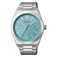 Una cassa di 40 mm in acciaio con cinturino in acciaio e dial waffle di colore verde acqua.